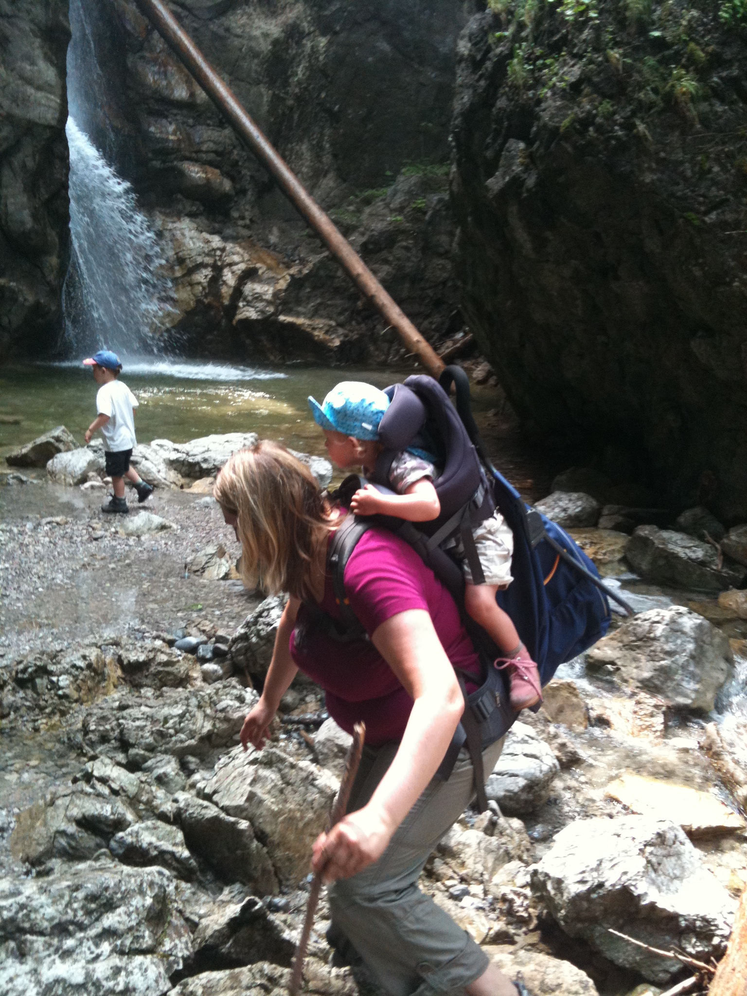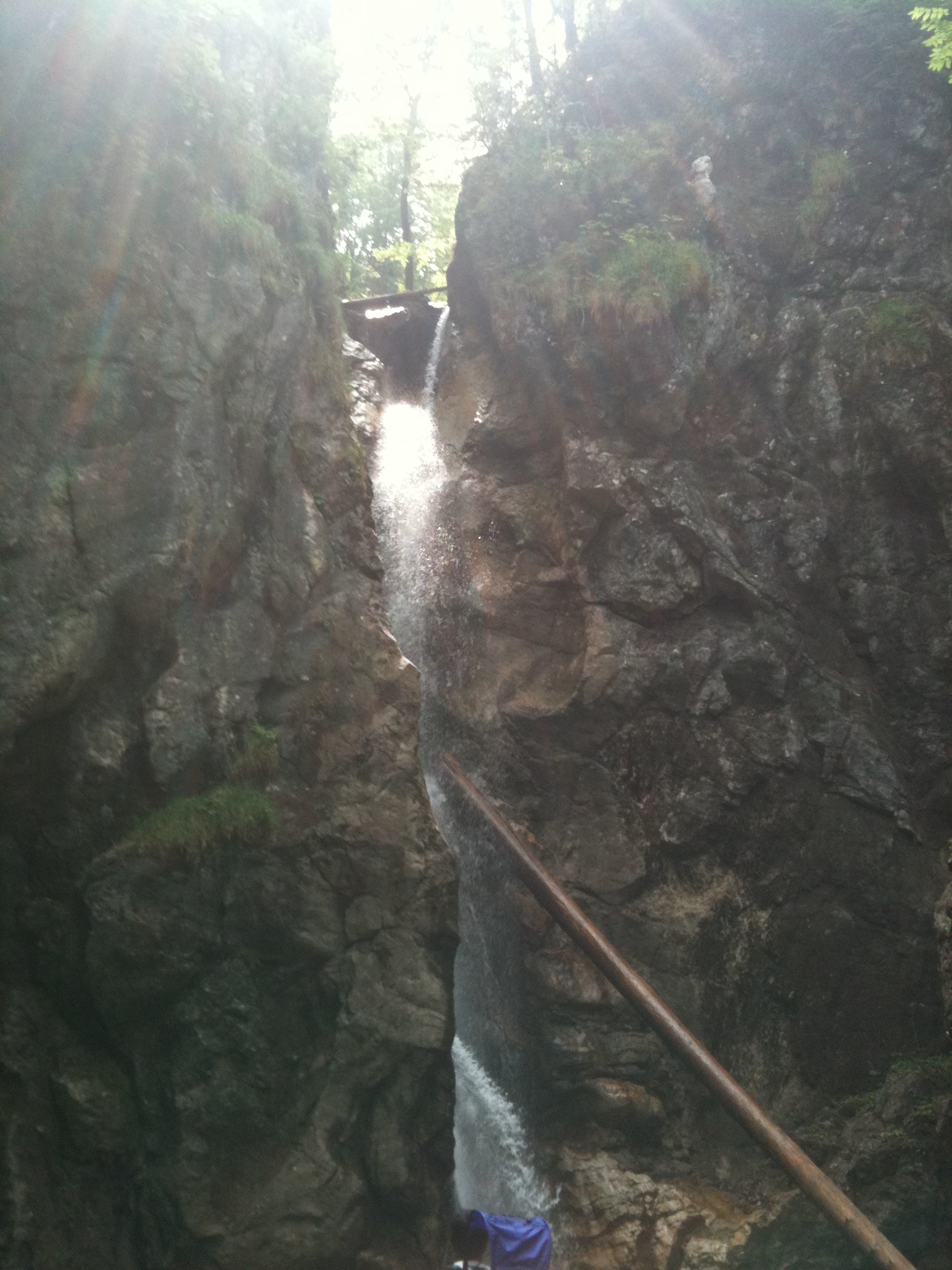 Die Kids findens super spannend und wer sich traut kann die Füße (oder auch mehr) im Becken unterhalb des Wasserfalls baden. Alternativ und auch „a bisserl“ wärmer bietet sich der Kochelsee an den man ebenfalls zu Fuß erreichen kann. Woran man jedoch kaum vorbeikommt ist an einer der beiden ortsansässigen Eisdielen. Bei uns hats zwar im Anschluß an die Wanderung geregnet und etwas abgekühlt – der Eisliebe hat das natürlich dennoch keinen Abbruch getan. Ich persönlich finde das Wasserfälle etwas magisches haben. Ich könnte (wären nicht die Wutzels dabei) stundenlang dem Wasserfall zuschauen oder mir das Plätschern anhören. Zum baden muss es allerdings sehr heiß sein, denn das Wasser ist eiskalt.. Zusammengefasst: ein Ausflug mit vielen Kombinationsmöglichkeiten – Wasserfall, See,Eis und Wanderung. Wenn das Wetter mitspielt ist für jeden was dabei – als Tipp: siehe auch Fotos in diesem Beitrag – gibts am Ende ein uriges Bauerncafe mit kühlem Bier..